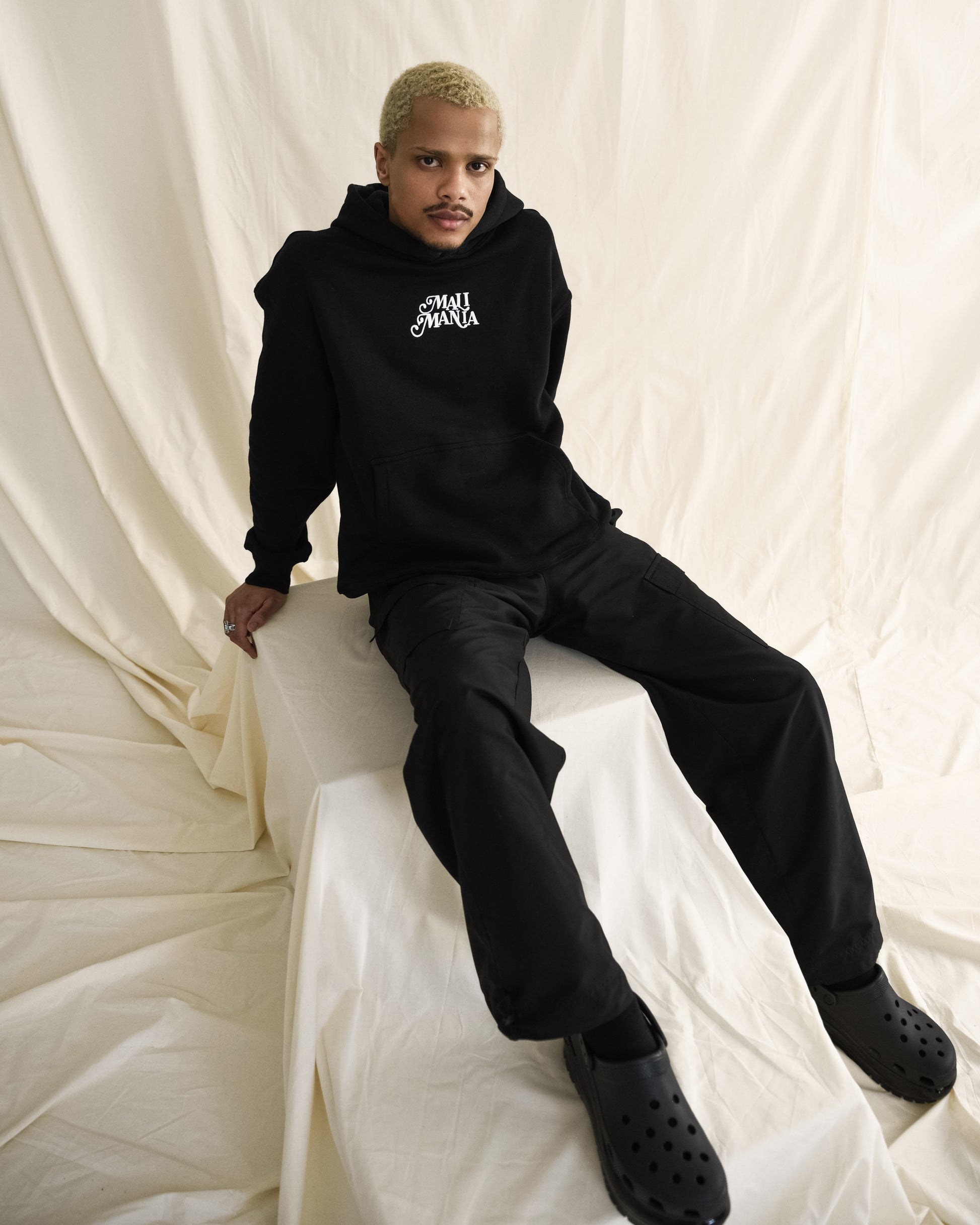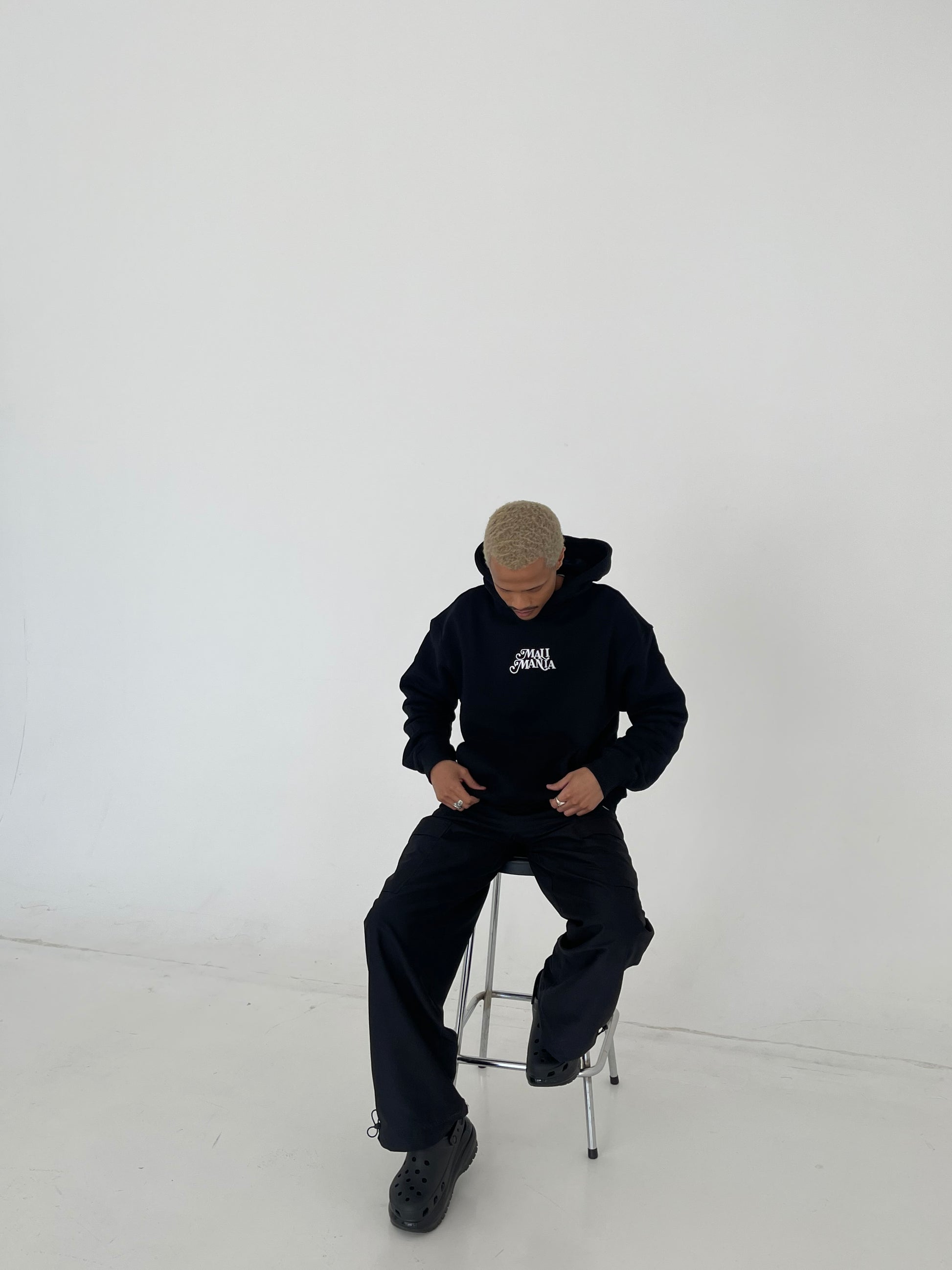 Introducing the Malimania Logo Hoodie in a sophisticated full black colour. This meticulously crafted hoodie offers a relaxed, slightly oversized fit, featuring an intricately embroidered white logo on the front and a bold, large-scale printed design on the back. Made from premium 420gsm 100% French terry cotton, it ensures unparalleled quality and comfort.